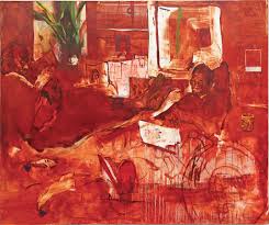 Packer’s paintings are rendered in loose line and brush stroke using a limited color palette, often to the extent that her subject merges with or retreats into the background. Suggesting an emotional and psychological depth, her work is enigmatic, avoiding a straightforward reading. “I think about images that resist, that attempt to retain their secrets or maintain their composure, that put you to work,” she explains. “I hope to make works that suggest how dynamic and complex our lives and relationships really are.”