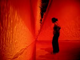Critics have described her work as “minimal,” making use of installation, drawing, photography, and video to express “formal concerns of space, light and the phenomenological with issues of individual subjectivity.” She has also made use of reflective surfaces like mirror or silver leaf to highlight the architecture of space. Of her work, Harris explains, “My projects often provide a disorienting encounter for the viewer: in my installations, I am concerned with destabilization and re-orientation. To achieve this I often create architectural and environmental interventions – by using light and reflective surfaces; by inverting subject and object or figure and ground; and/or by reversing up and down, exterior and interior.”