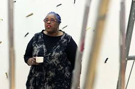 Howard began her adult creative life as a dancer, before working in visual art. In the early 1980s, Howard’s installations took the form of manipulated windows from storefronts and churches. They later evolved into constructed habitats that provided walk-in environments. For example, in 1990 Howard created a house made of engraved bottles and sand in the atrium of the Afro-American Museum in Los Angeles; this work was inspired by the book Autobiography of an Ex-Colored Man by James Weldon Johnson and makes visual reference to the bottle houses that Johnson describes in the book. In 2005, she fabricated and installed a house made of red glass at the Museum of Glass in Tacoma, Washington. In 2019, Ms. Howard’s work “TAP: Investigation of Memory” was exhibited at the Oakland Museum of California. The exhibit was a powerful multimedia installation that examines themes of identity, church culture, gentrification, dance, activism, and more. https://museumca.org/exhibit/mildred-howards-tap-investigation-memory
