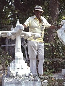 Born the son of a railroad worker, Bailey left school in the third grade and moved to Atlanta, Georgia from Flovilla, Georgia at the age of thirteen. Like his father, he worked on the railroads until 1942. He married his wife Marjorie in the early 1940s and left the instability of the railroad to become a cement mason in 1942 Specifically, he worked with cemeteries and funeral homes making cement grave markers and grave-digging. Bailey made his first yard sculpture (Crucifixion) in 1945 and continued to fill his yard thereafter with monuments to political figures, celebrities, and artistic figures.