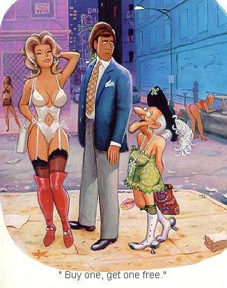 Brown was taking art classes and driving a Chicago Transit Authority Bus. While he was attending classes at the university he stopped by the Playboy Offices in Chicago to drop off some ideas and sketches which ran the next year. He began to develop a reputation as a cartoonist and sold his first cartoon to Playboy in 1962. “Granny” was his first color work for the magazine published in 1966. The inspiration for the granny character came from people he would sketch during his hours driving the route and encountering situations that occurred on his bus. Often, older women would board the bus and ask sexual innuendo laden questions such as, “Do you go down?” and “Do you go all the way?” In all, Brown had more than 600 cartoons published by the magazine.