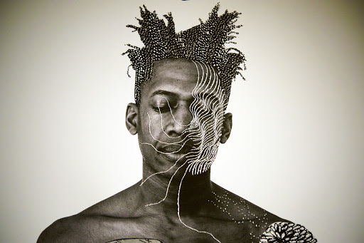 Lewis graduated from Virginia Commonwealth University with a Bachelor of Science in Nursing in 2009. Lewis’ artwork borrows heavily from that medical training to deliver works that he describes as being influenced by the “rhythms and records of people’s lives… vulnerability, empathy and care.” As the self-taught artist’s work and exposure progressed, he “started using African-American figures and thinking about empathy and what is empathy outside of the hospital.” The Washington City Paperdescribed his process as “… The works are compositionally minimal, even austere—mostly portraits that are simple and straight on, printed on porous paper in stark black and white. Lewis then sculpts the paper by snipping, slicing, and perforating the silhouette of the bodies to create three-dimensional figures that emerge from the canvas.”